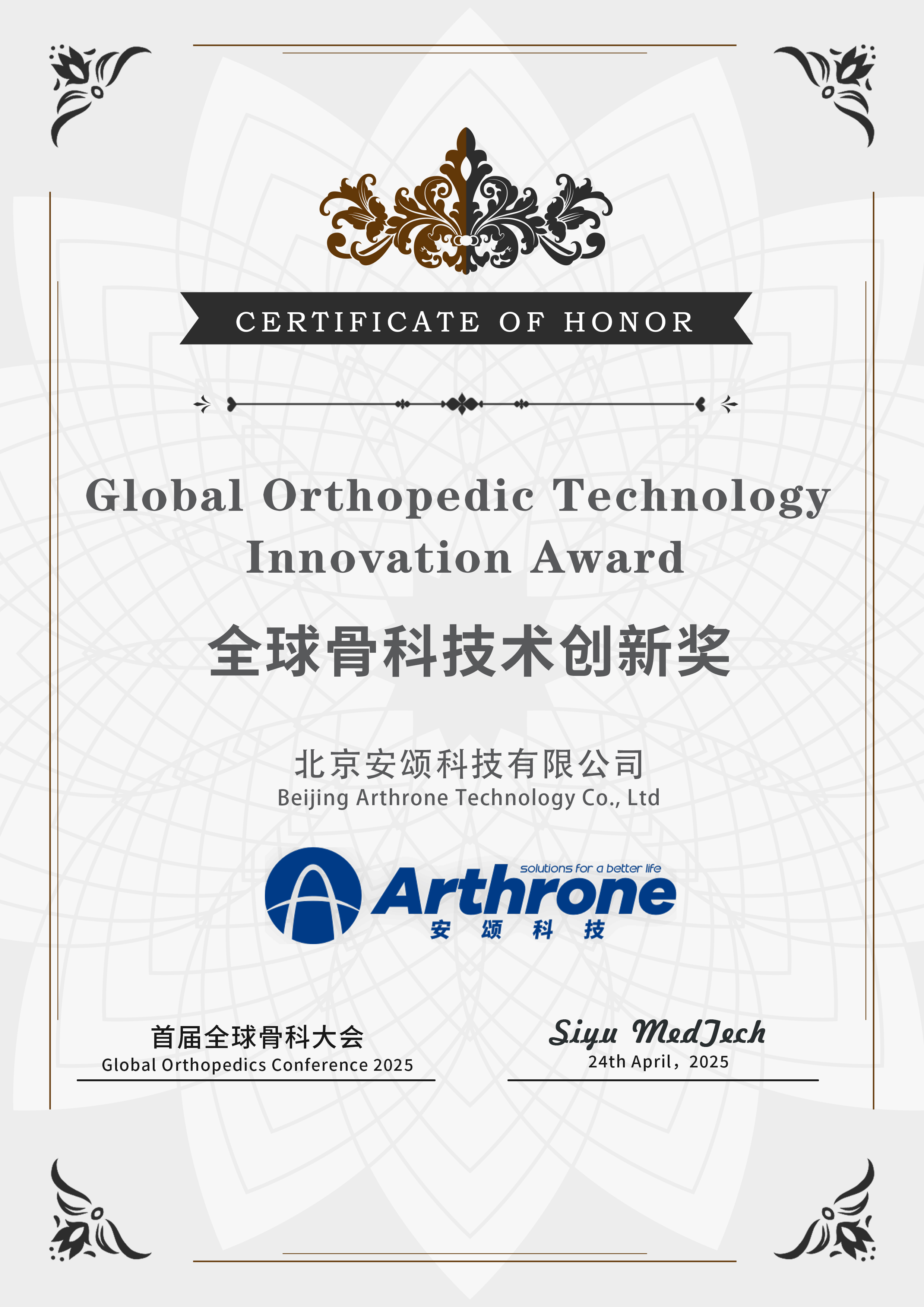 Arthrone was founded in 2017 by a group of scientists with a global vision and innovative spirit, specializing in the application of bioceramic technology in orthopedics and dentistry. After eight years of rapid development, we have become the FIRST and ONLY company in China to obtain the registration certificate for ceramic femoral heads in hip joints and successfully implant them into the human body.